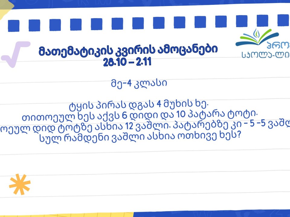 მათემატიკის კვირის ამოცანები