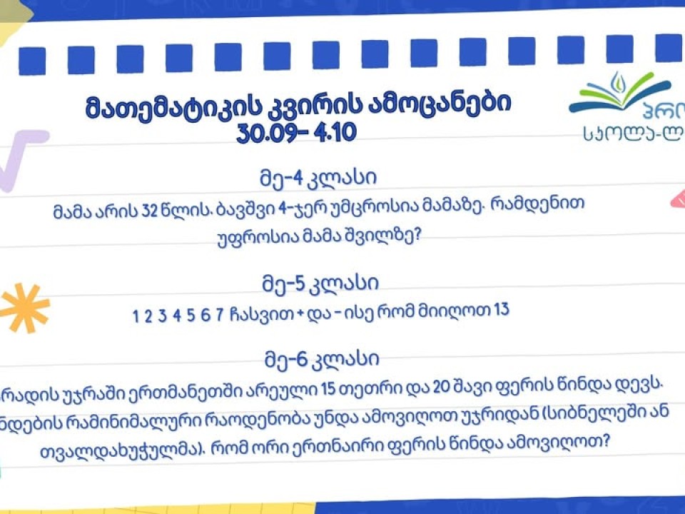მათემატიკის კვირის ამოცანები