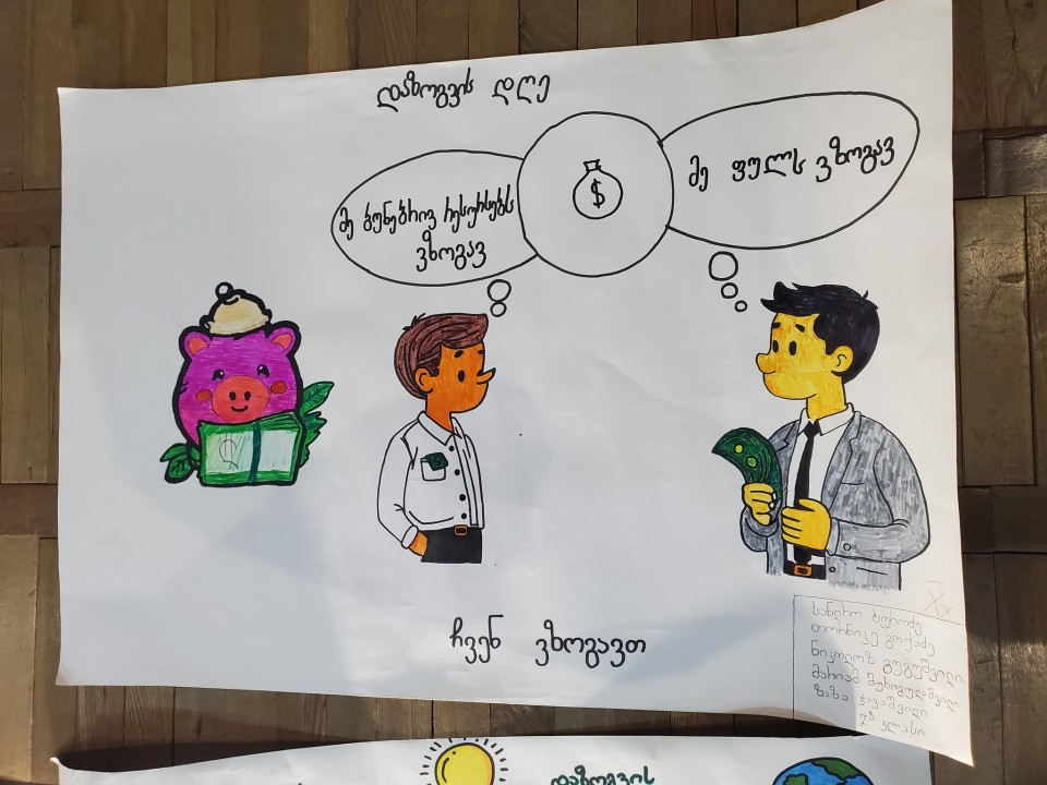👉 ამ დღისათვის მზადება მეშვიდე კლასის მოსწავლეებთან საინფორმაციო სახის შეხვედრებით დაიწყო, სადაც გაიხსენეს ბიზნეს გაკვეთილებზე ნასწავლი, ბაზრობების მომზადებისას შეძენილი უნარები და ასევე, გაიგეს ბევრი ახალი ტერმინი და მიიღეს საჭირო ინფორმაცია დაზოგვასთან, ფულთან, ეროვნულ ბანკთან და დაზოგვის მნიშვნელოვანებასთან დაკავშირებით.