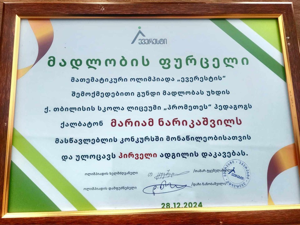 ๐Ÿ“ƒ  ๐Ÿ“ƒ  แƒแƒ› แƒžแƒแƒกแƒขแƒ˜แƒ— แƒ’แƒ•แƒ˜แƒœแƒ“แƒ แƒ›แƒ˜แƒ•แƒฃแƒšแƒแƒชแƒแƒ— แƒฉแƒ•แƒ”แƒœแƒ˜ แƒกแƒ™แƒแƒšแƒ˜แƒก แƒ’แƒแƒ›แƒแƒ แƒฏแƒ•แƒ”แƒ‘แƒฃแƒš แƒžแƒ”แƒ“แƒแƒ’แƒแƒ’แƒก, แƒ›แƒแƒ แƒ˜แƒแƒ› แƒœแƒแƒ แƒ˜แƒ™แƒแƒจแƒ•แƒ˜แƒšแƒก, แƒ แƒแƒ›แƒ”แƒšแƒ›แƒแƒช 2024 แƒฌแƒšแƒ˜แƒก แƒกแƒแƒจแƒ”แƒ›แƒแƒ“แƒ’แƒแƒ›แƒ แƒกแƒ”แƒ–แƒแƒœแƒจแƒ˜, แƒ›แƒแƒกแƒฌแƒแƒ•แƒšแƒ”แƒ‘แƒšแƒ˜แƒก แƒ™แƒแƒœแƒ™แƒฃแƒ แƒกแƒจแƒ˜ แƒžแƒ˜แƒ แƒ•แƒ”แƒšแƒ˜ แƒแƒ“แƒ’แƒ˜แƒšแƒ˜ แƒ“แƒแƒ˜แƒ™แƒแƒ•แƒ แƒ“แƒ แƒ›แƒ”แƒแƒ แƒ” แƒ™แƒšแƒแƒกแƒ˜แƒก แƒ›แƒแƒกแƒฌแƒแƒ•แƒšแƒ”แƒก, แƒšแƒฃแƒ™แƒ แƒญแƒแƒœแƒ™แƒแƒขแƒแƒซแƒ”แƒก. แƒšแƒฃแƒ™แƒ แƒ›แƒแƒ—แƒ”แƒ›แƒแƒขแƒ˜แƒ™แƒ˜แƒก แƒกแƒแƒ›แƒขแƒฃแƒ แƒ˜แƒแƒœ แƒแƒšแƒ˜แƒ›แƒžแƒ˜แƒแƒจแƒ˜ แƒ›แƒ”แƒแƒ แƒ” แƒแƒ“แƒ’แƒ˜แƒšแƒแƒกแƒแƒœแƒ˜ แƒ’แƒแƒฎแƒ“แƒ.