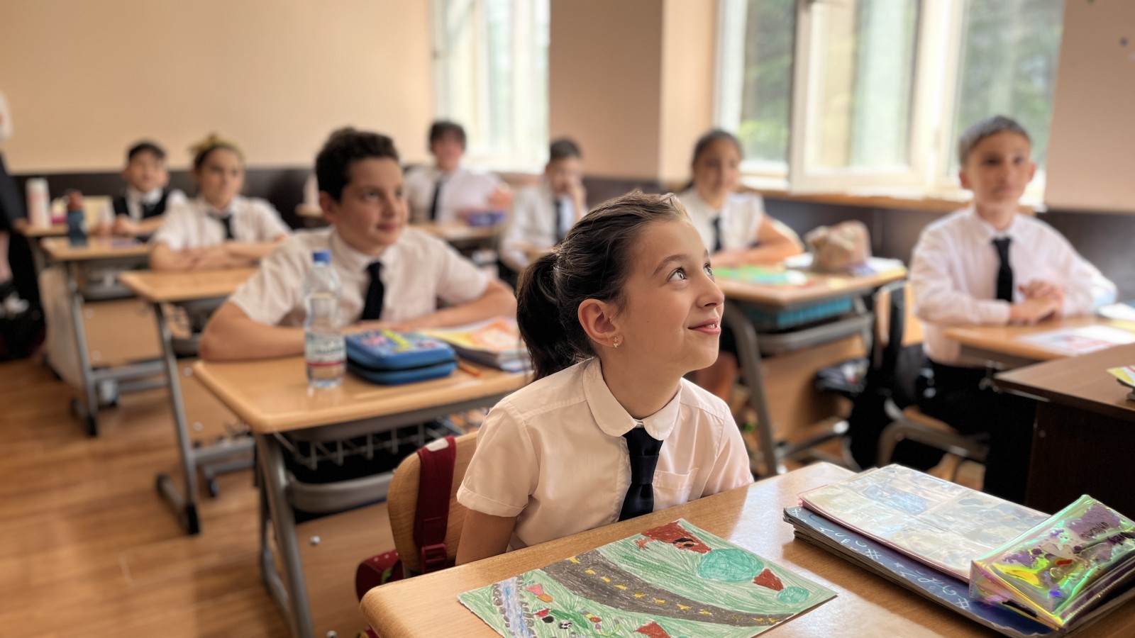 ნათელი საკლასო ოთახებითა და განიერი დერეფნებით, რომელიც მოიცავს: